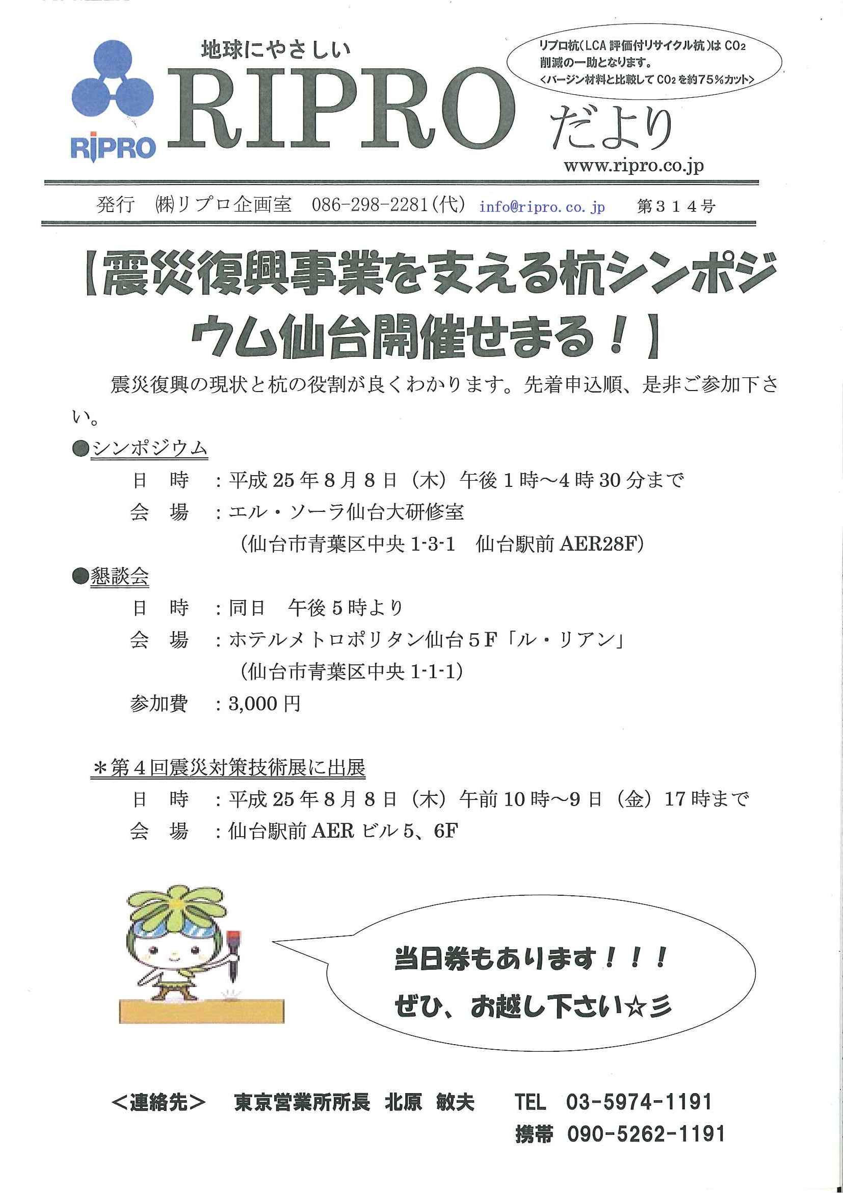 「震災復興事業を支える杭シンポジウム仙台開催せまる!」