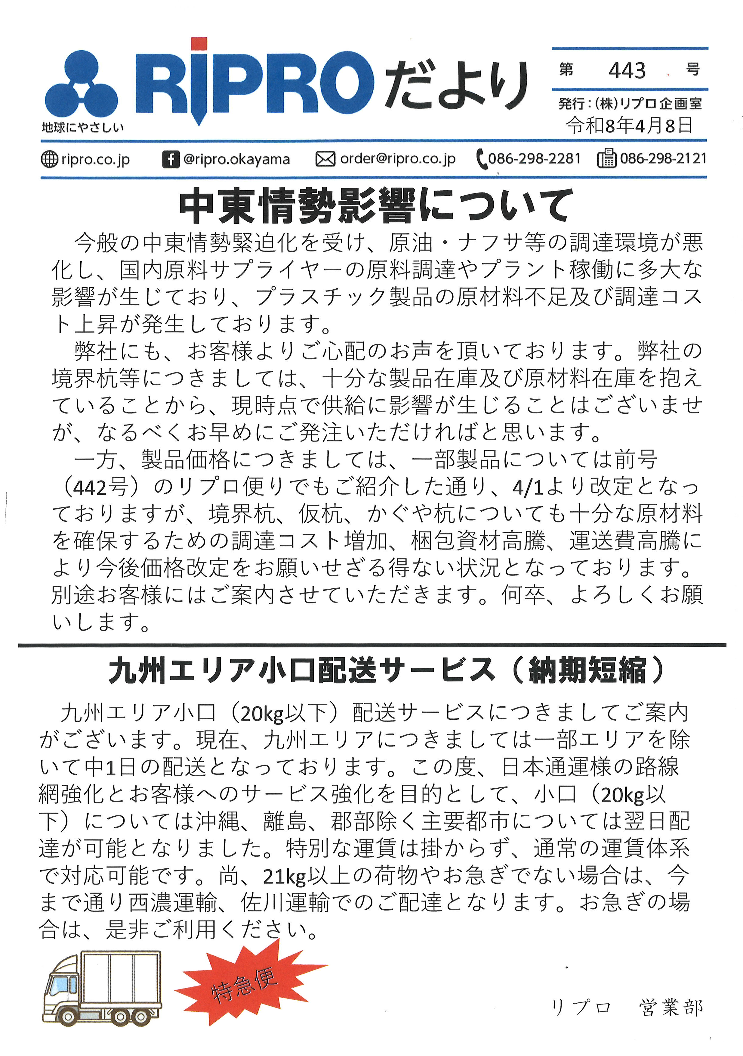リプロだより[中東情勢悪化の影響について]
